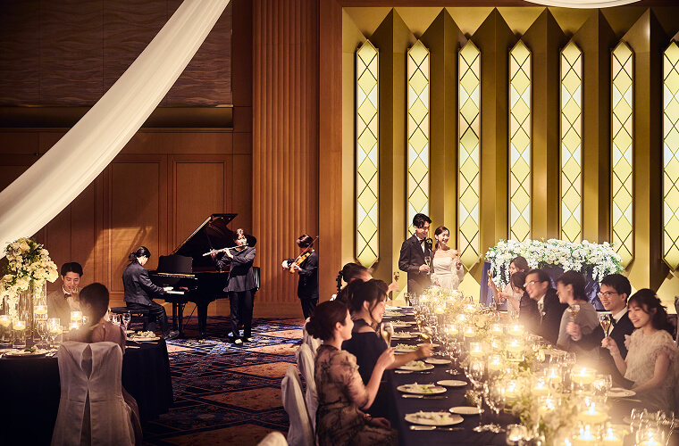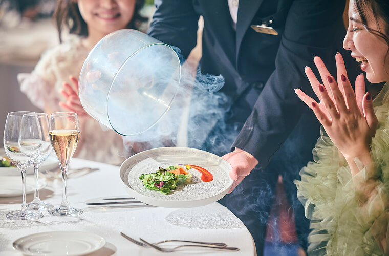 ふたりの想いが形になった誓いのあと、待っているのは、笑顔と感謝があふれる祝宴の時間。大切な人たちと心を通わせながら、ふたりの物語がさらに深まっていきます。