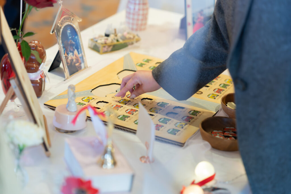 おふたりの楽しそうな雰囲気を感じるウェルカムスペースはゲストの皆さまも楽しそうに足を止めながら写真を撮る姿が印象的でした。