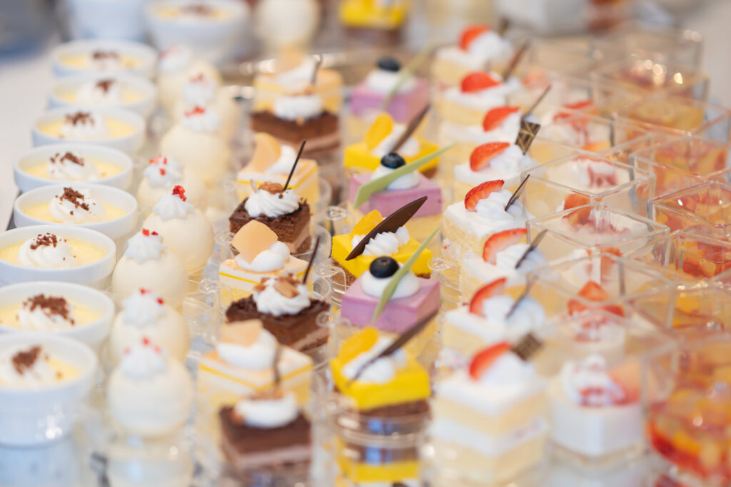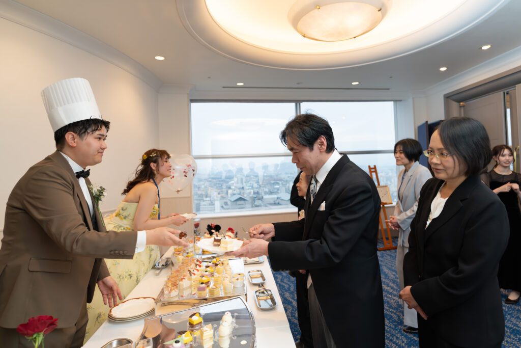 パーティーの後半には、おふたりがシェフ姿で登場するデザートブッフェも。