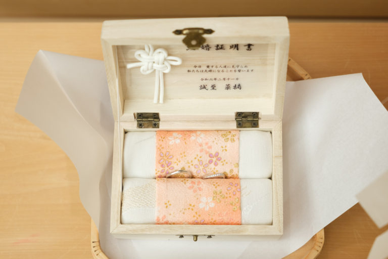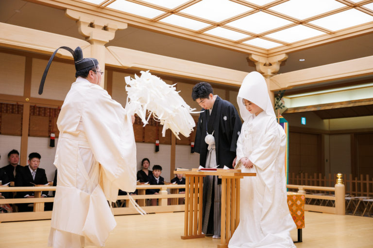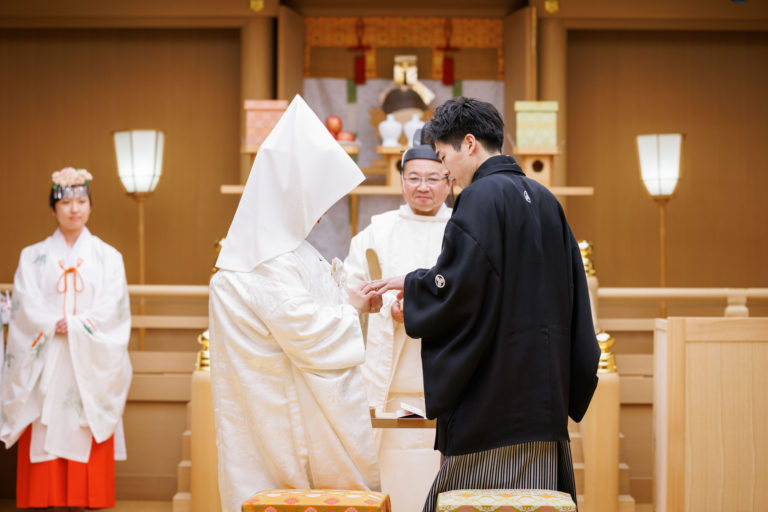 JRホテルクレメント高松には「鳳翔殿」という神殿があり、本格的な神前式を行うことが可能です。おふたりも当初から挙式は和でされたいという想いがあったので、ホテル内の神殿をお選びいただきました。
