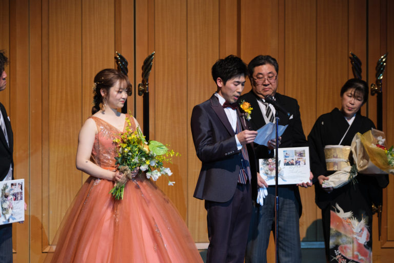 この一日がおふたりにとってもご家族様にとっても、ゲストの皆様にとっても記憶に残る一日となればうれしく思います。これからも明るいおふたりで、素敵な家庭を築いてください。