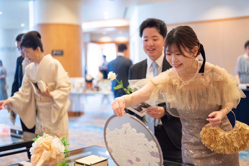 ゲスト一人ひとりの想いを重ねて完成するウェディングドロップスやドレスの色当てクイズが用意され、参加する時間そのものが思い出に。