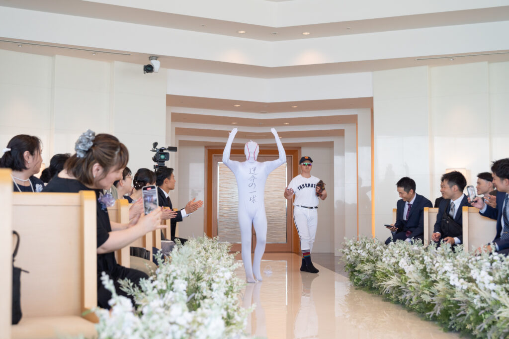 さらに、ご友人が野球の演出でリングボーイを務めるシーンもあり、笑顔と祝福にあふれた時間に。