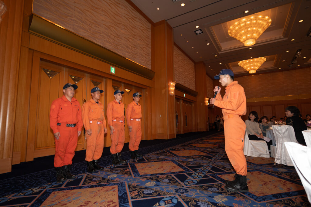 新郎様のご友人による余興ではお仕事を感じさせる姿での登場に、笑顔が一気に広がり、会場は温かな拍手に包まれました。